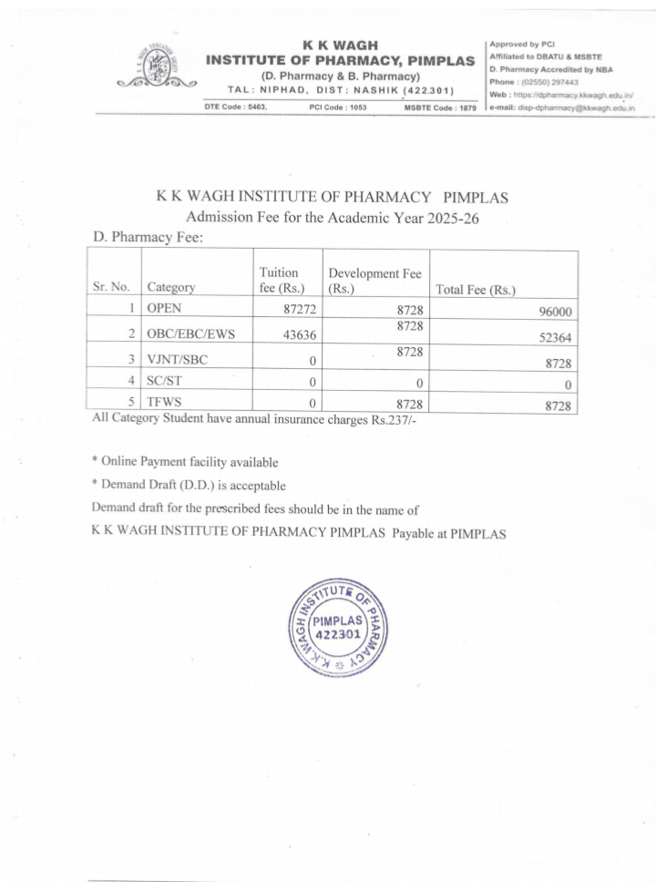 (Approved by PCI, Recognized by State Government, Affiliated to Dr. Babasaheb Ambedkar Technological University, Lonere and MSBTE, Mumbai.)